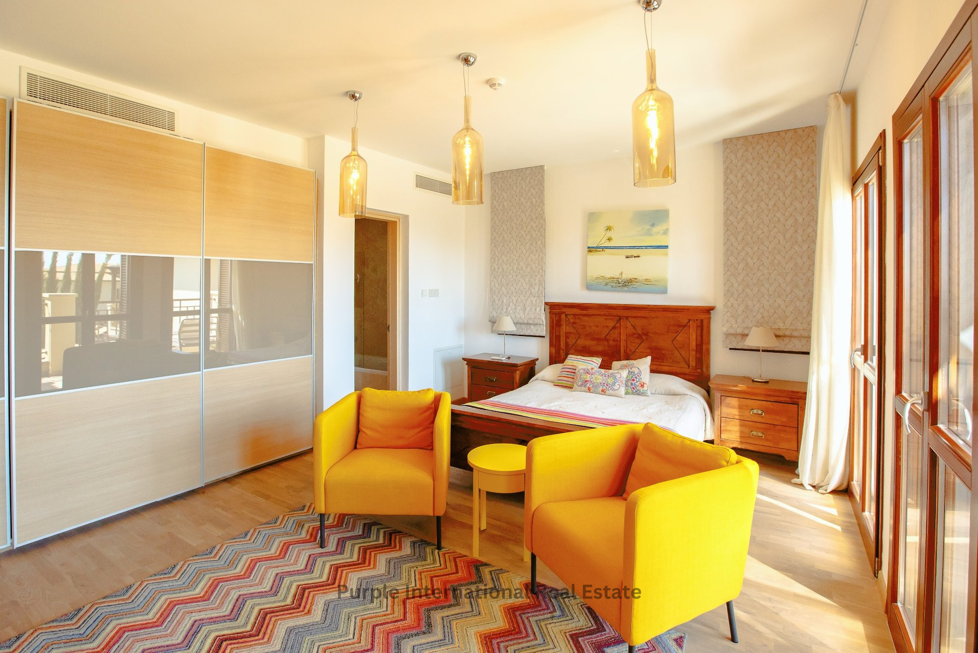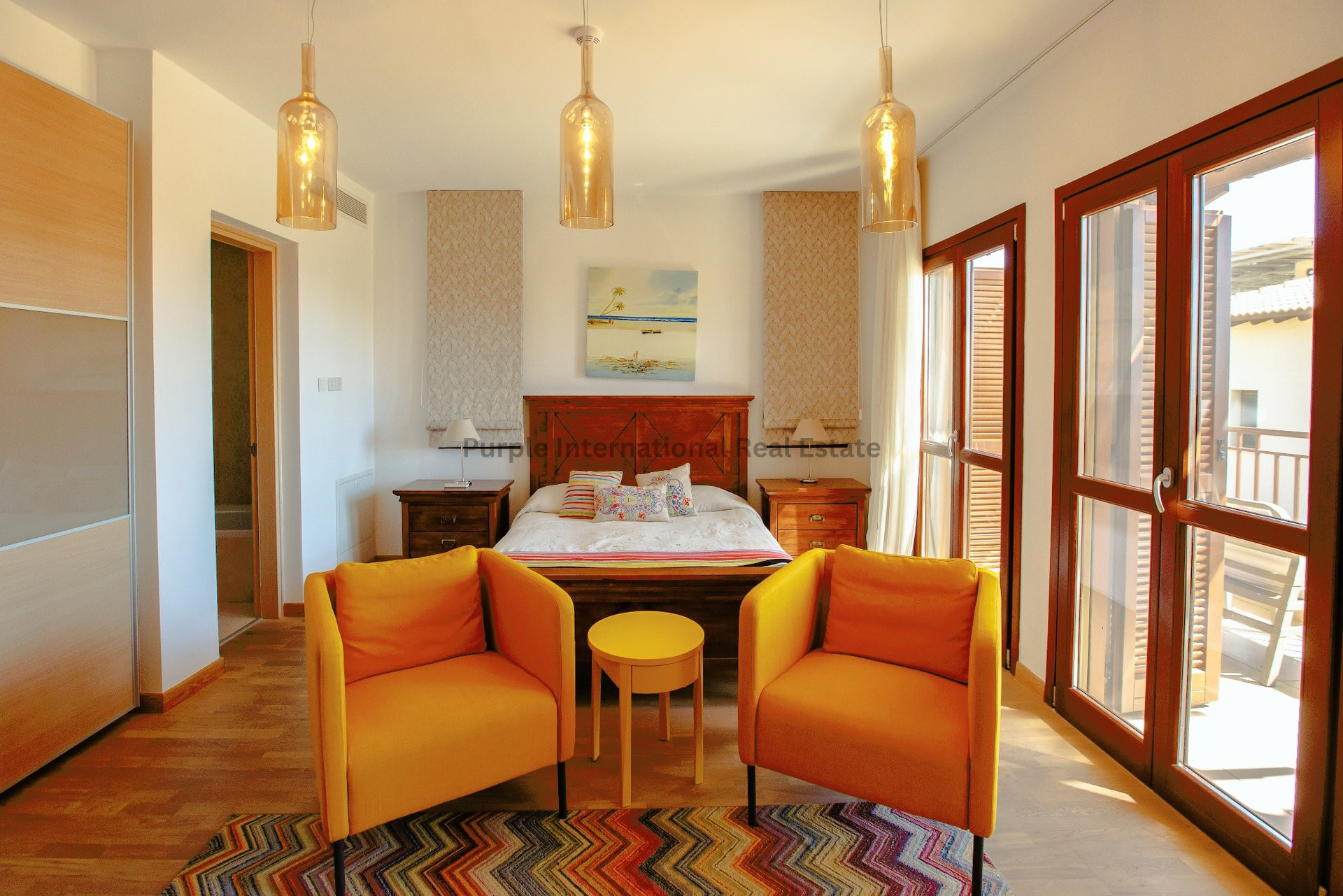 Ascending to the upper level, you'll discover three generously proportioned bedrooms, each adorned with beautiful parquet flooring and adorned with tasteful drapes and soft furnishings. These tranquil retreats are furnished with either king size or double beds, providing utmost comfort. Each bedroom presents its own private balcony, ensuring a tranquil space to relax and soak in the expansive sea views. The en-suite bathrooms are elegantly appointed with twin wash basins nestled in a marble vanity unit, and a bath/shower combination for ultimate relaxation.