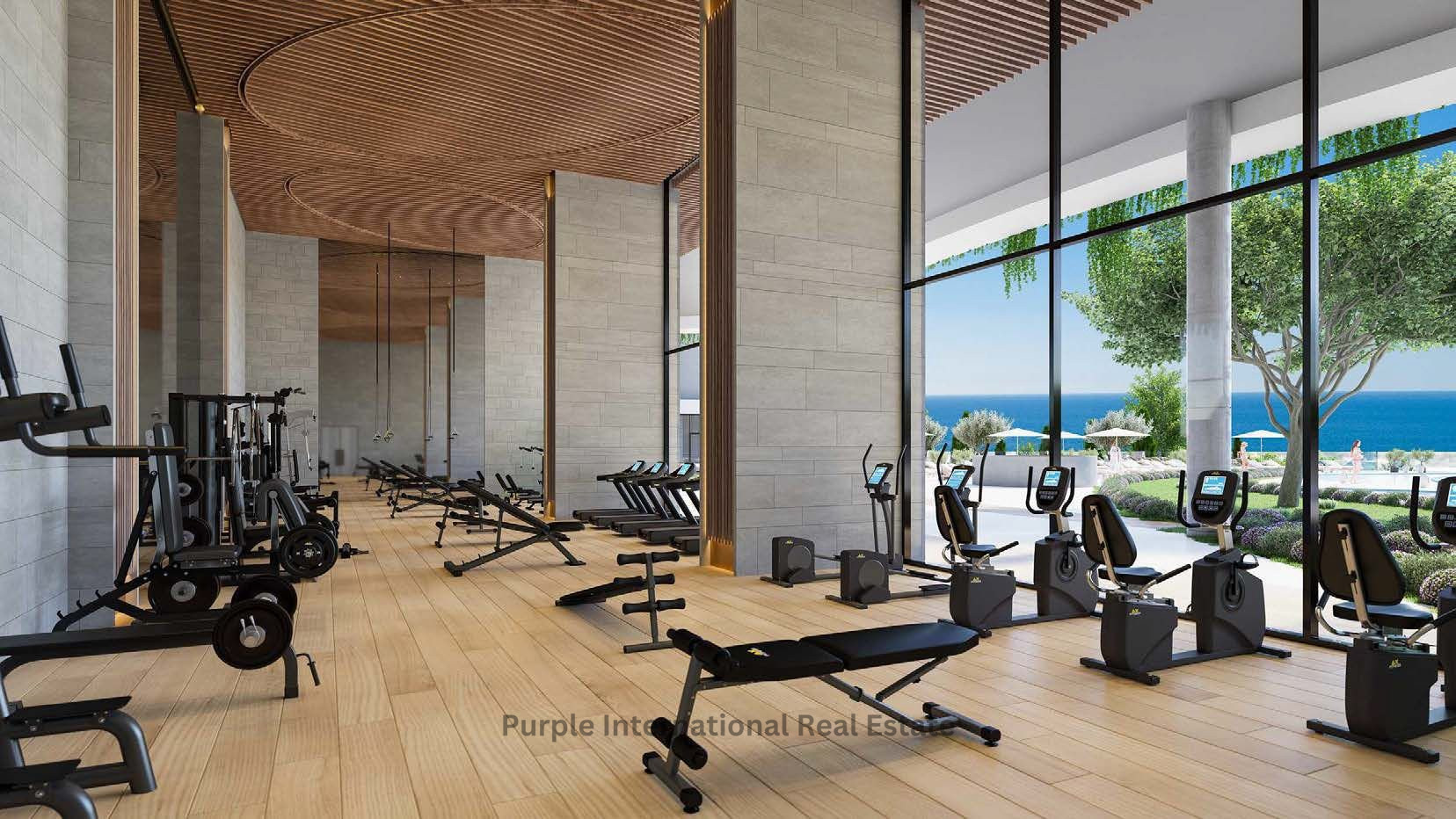 Male and female steam bath and sauna / massage and treatment rooms 200 sq.m double height gymnasium overlooking the sea