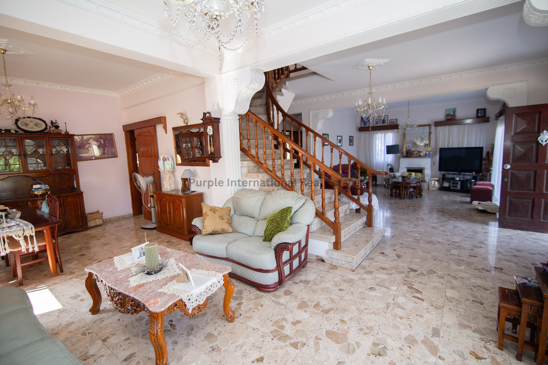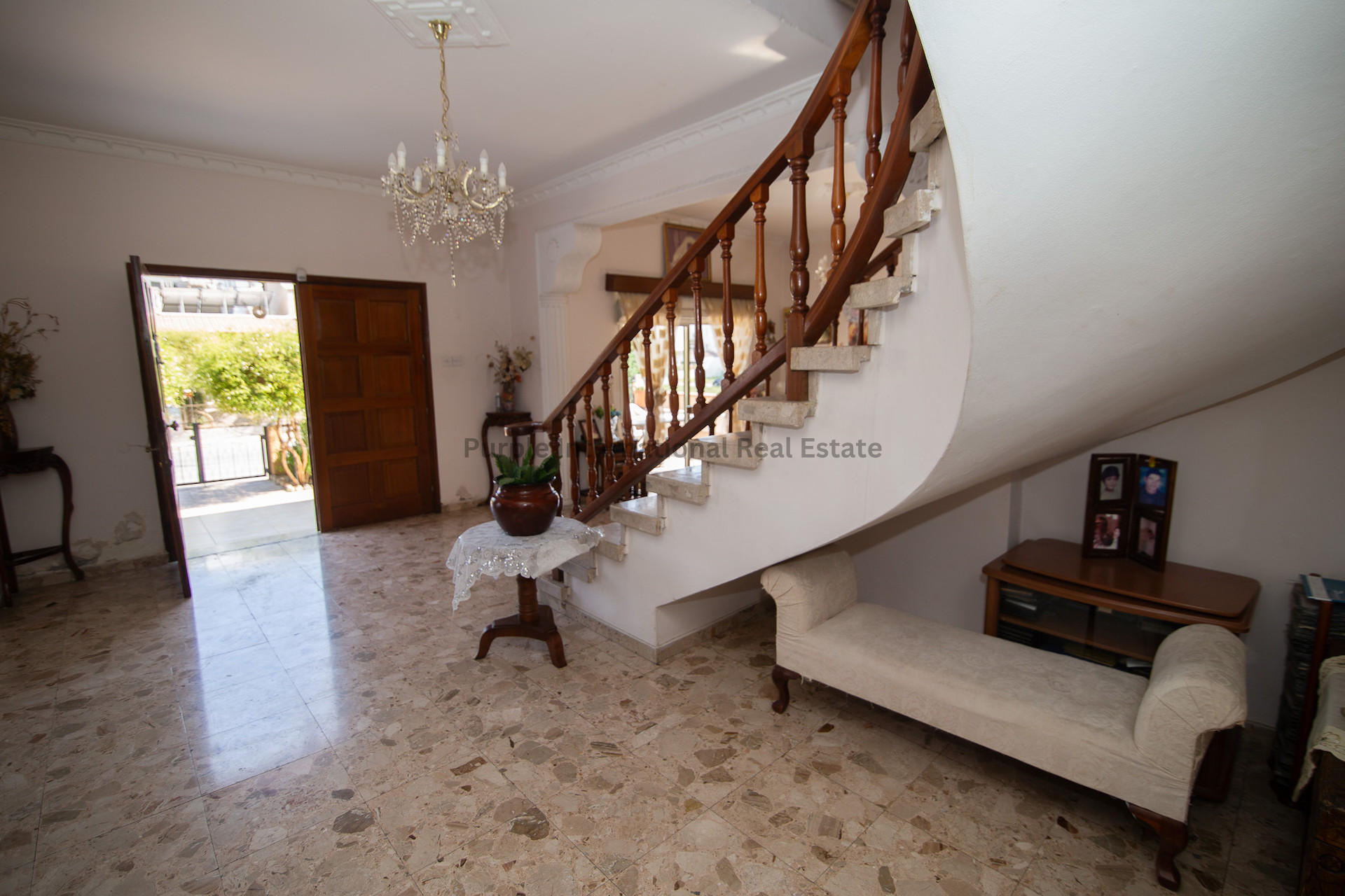 Upstairs, three double bedrooms await, each with access to verandas that offer natural light. The master bedroom boasts an en-suite shower, while a family shower room serves the other bedrooms. A spacious landing area, ideal for an office setup complements the upper level, along with a storage room and a large open veranda.