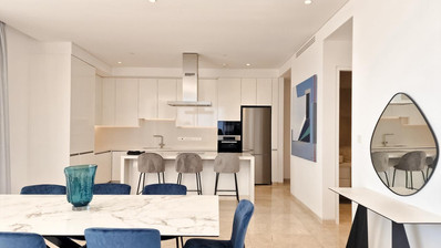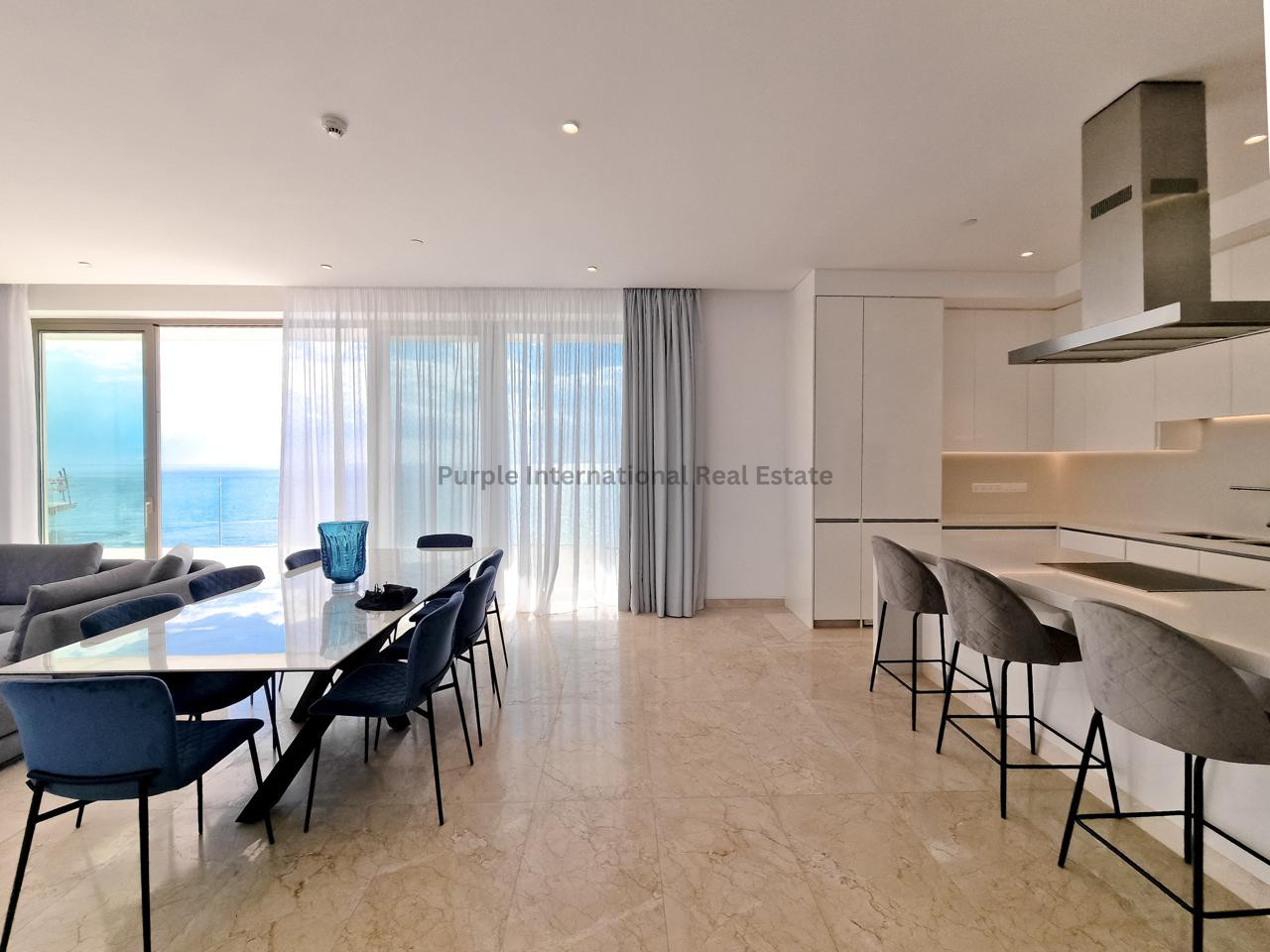 Enjoy relaxing in the bright, open-plan living area, which comes fully furnished with high-quality fittings. Large windows flood every room with natural light and frame panoramic and uninterrupted sea views. Step out onto your private balcony to savor the fresh air and listen to the waves—you are right on the seafront.