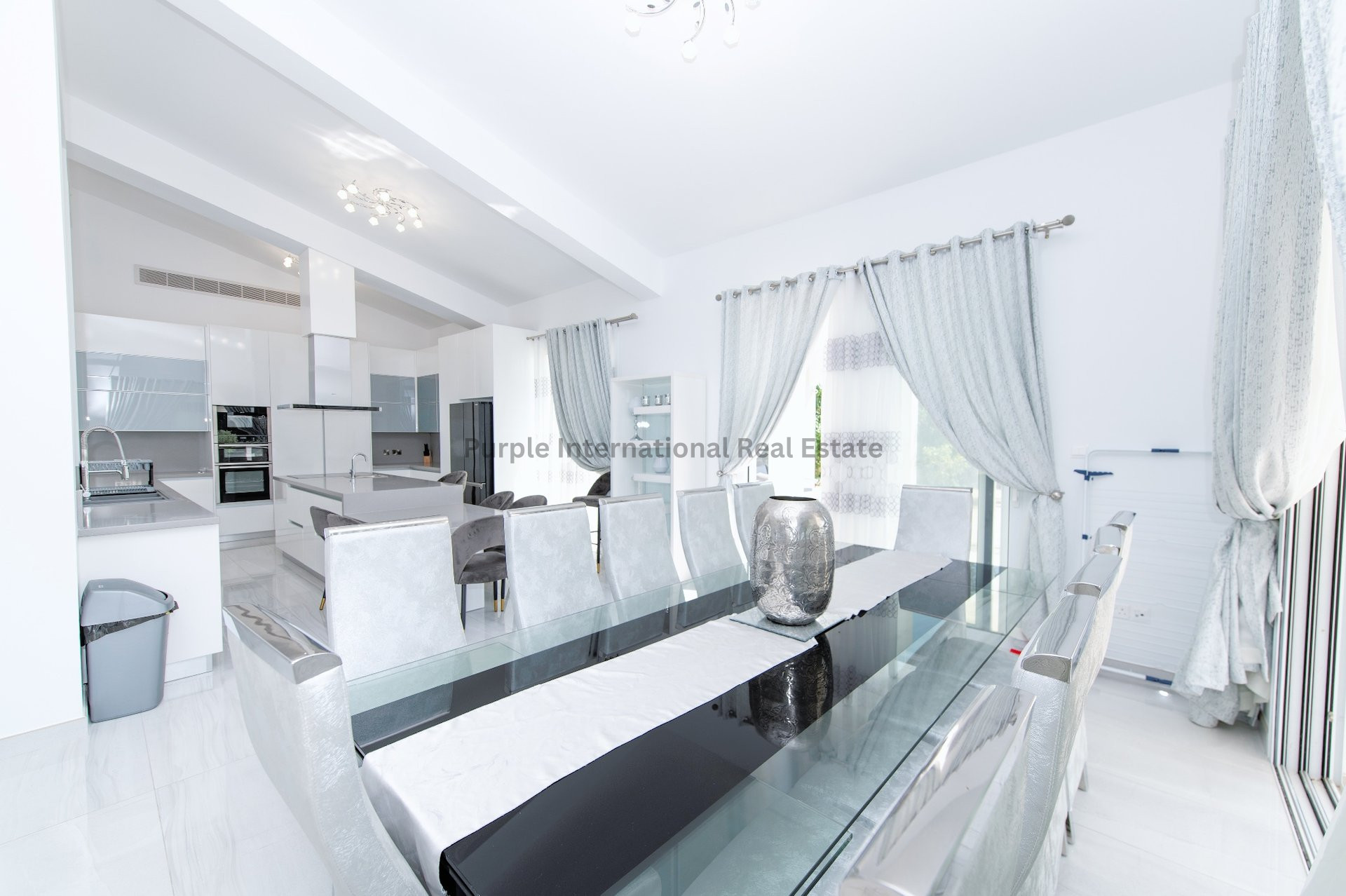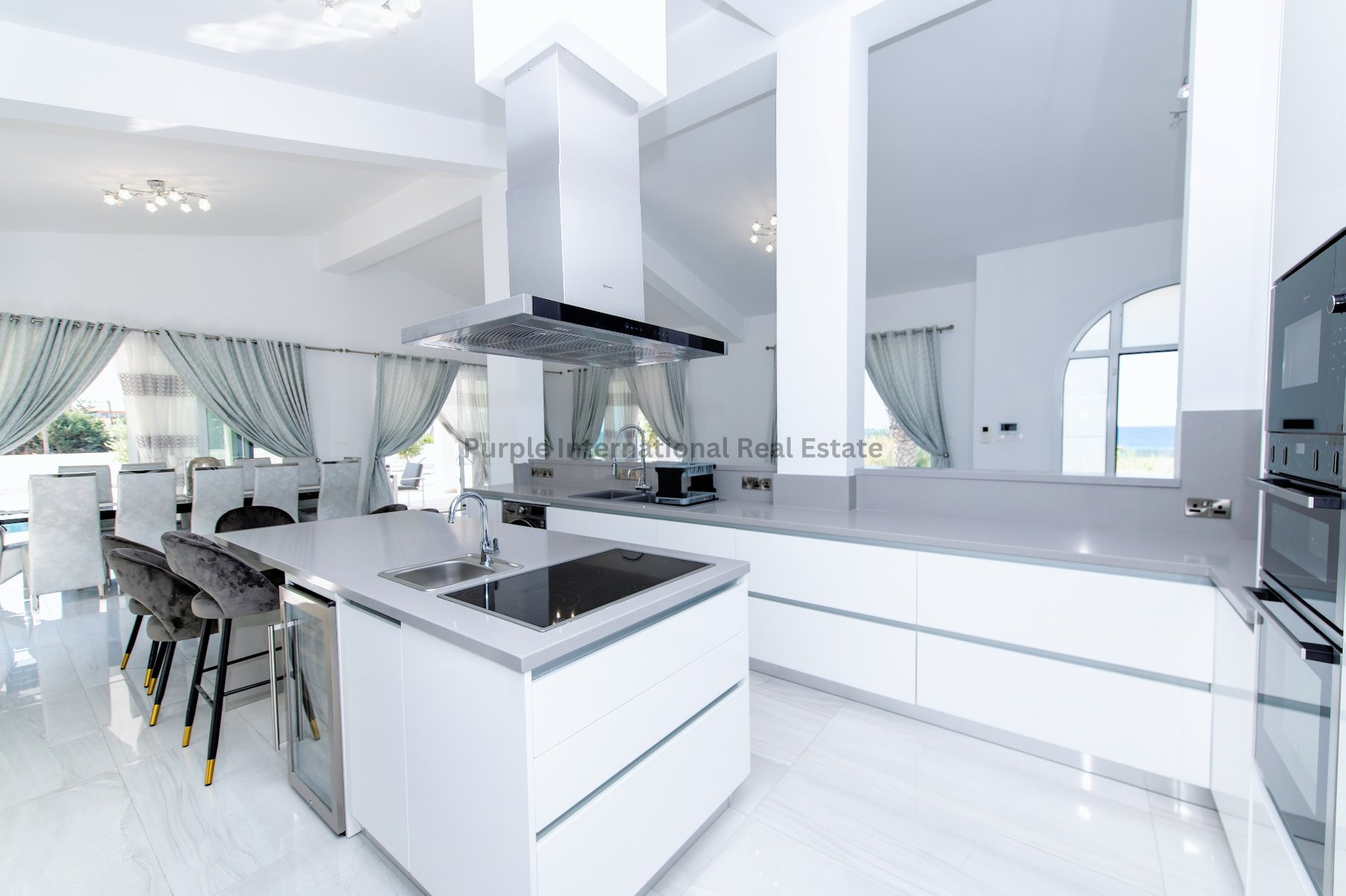 The heart of the home is the large, fully furnished kitchen, showcasing top-of-the-line appliances, including a built-in dishwasher and a wine cooler. The open-plan layout seamlessly connects the kitchen to the living spaces, making it an ideal setting for entertaining guests or spending quality time with family.