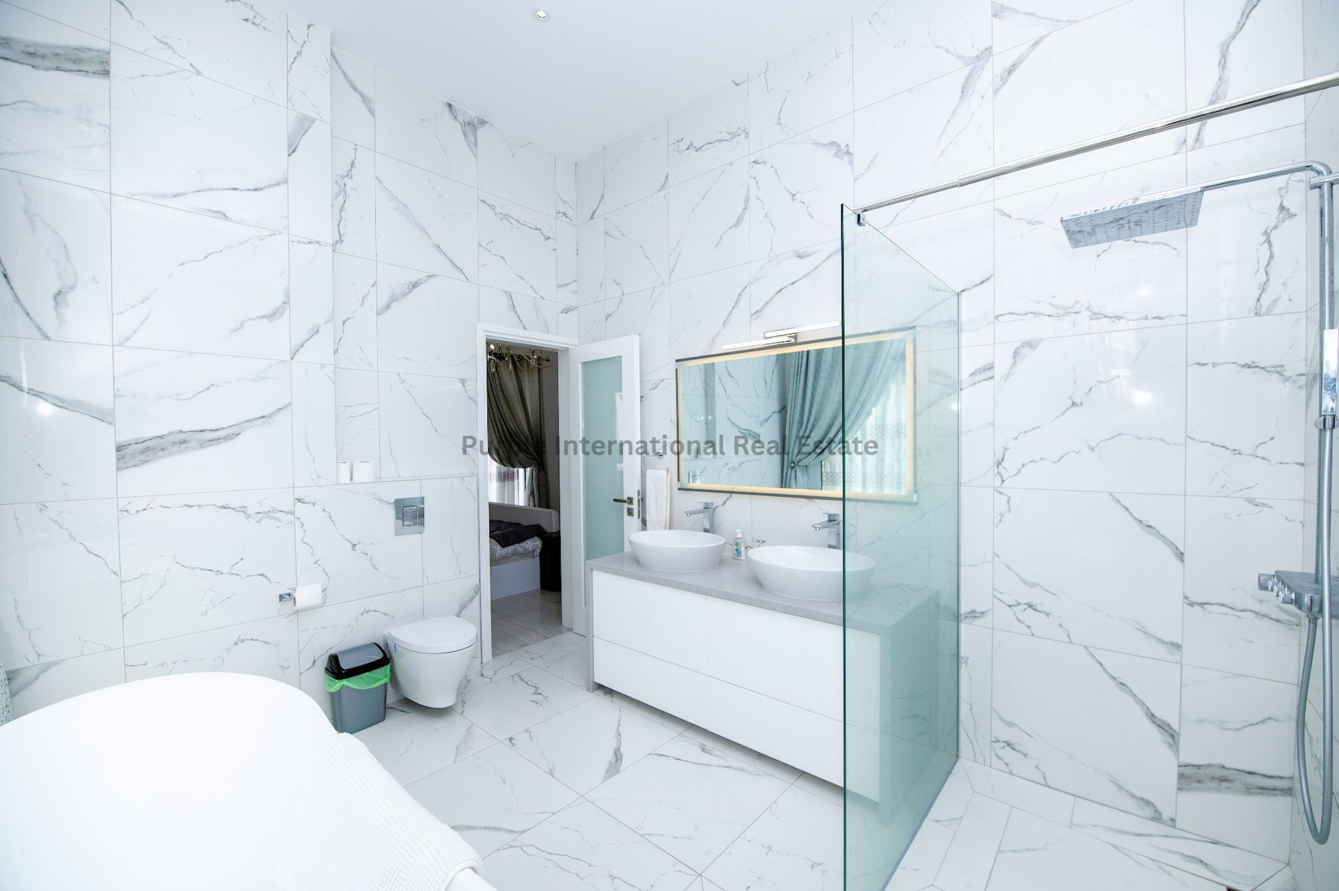 The villa features four spacious bedrooms, each with its own ensuite bathroom, ensuring absolute privacy and convenience for all residents. The master bedroom is a true retreat, complete with a walk-in wardrobe, offering a touch of opulence.