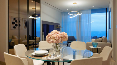 The apartment offers luxury features such as underfloor heating and an elevator for effortless access. The bright open-plan living and dining area leads to large windows, providing a stunning panoramic view. A private jacuzzi adds a touch of relaxation and luxury to your daily routine.