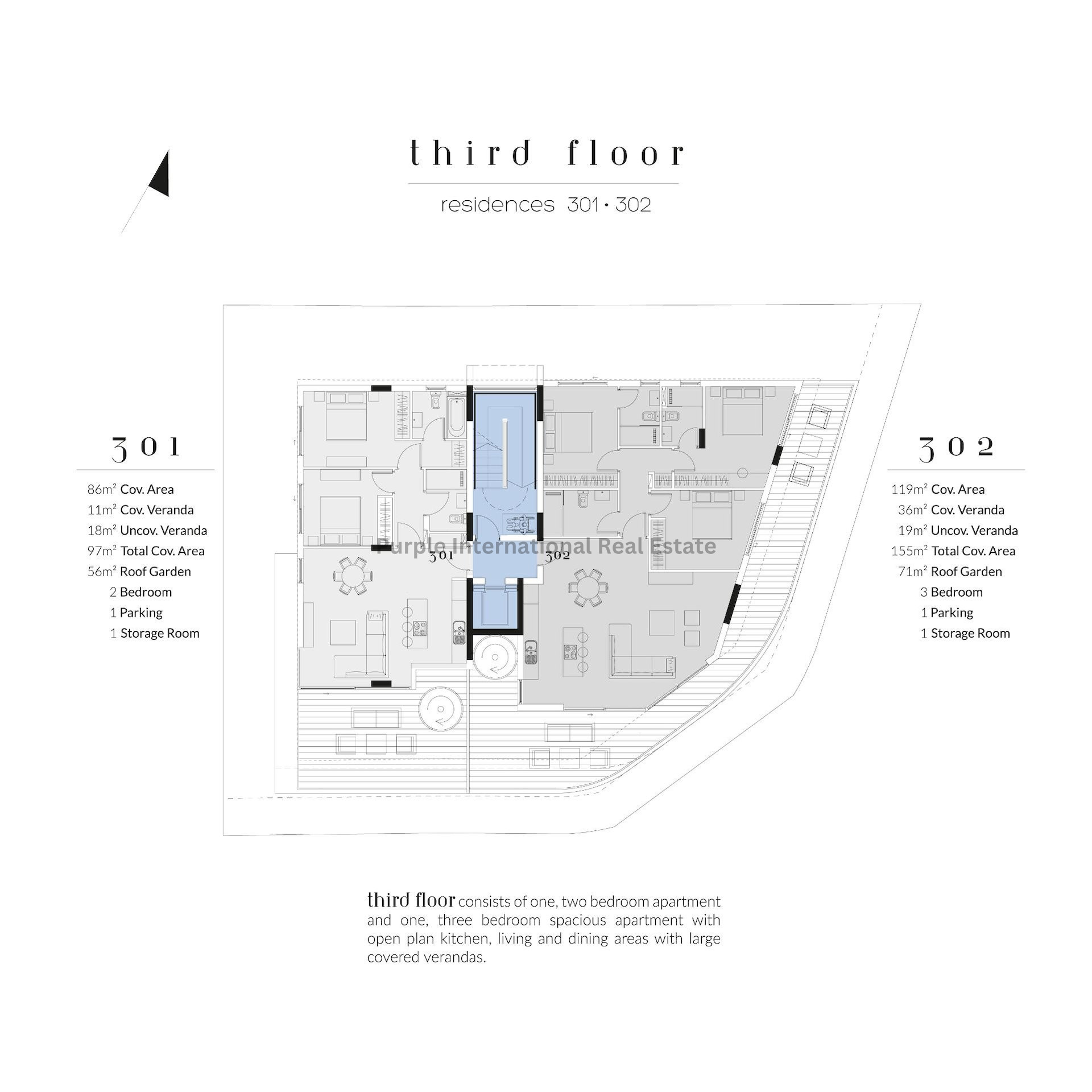 This stunning penthouse is available through Purple International Real Estate. Contact us today to learn more about this exciting opportunity.