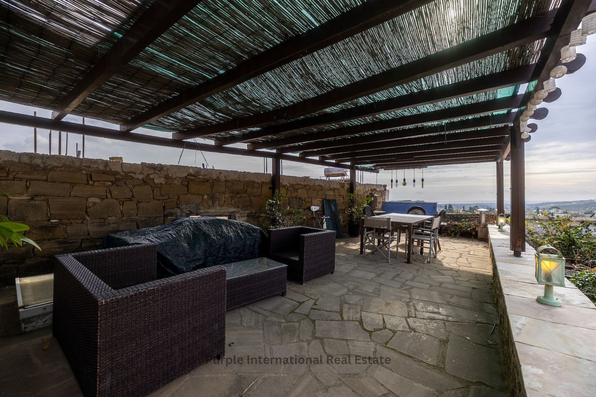 Beyond the courtyard lies a charming private annex, home to the second bedroom. Equipped with its own kitchenette and en-suite, this space is ideal for hosting guests or creating a private retreat. Above the annex, a sprawling roof terrace invites you to take in breathtaking views of the village. It’s the perfect venue for al fresco gatherings or tranquil evenings under the stars.
