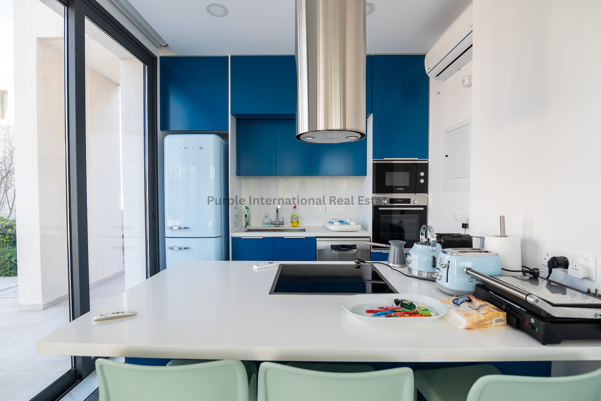 Inside, the villa boasts a bright, open-plan living space filled with natural light streaming through large windows, highlighting the sleek, contemporary interiors. The fully equipped high-spec kitchen features premium Bosch and Smeg appliances, combining practicality and modern elegance for effortless daily living. Originally designed as a four-bedroom villa, one of the bedrooms has been converted into a spacious walk-in closet, which can easily be reverted back if desired. Fully furnished with stylish finishes, the property is ready to move in, making it an excellent choice for immediate enjoyment.