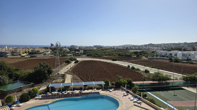 Located in a secure gated complex, residents benefit from both privacy and peace of mind. The building features an elevator for easy access and a communal swimming pool, ideal for relaxation and enjoying warm, sunny days. Panoramic views, including beautiful sea views, can be enjoyed from the apartment, creating an uplifting and tranquil atmosphere.