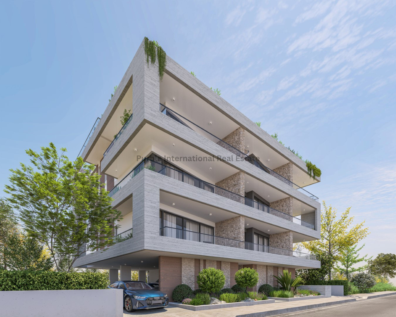 The project features an impressive entrance with distinctive architectural details, a video intercom system, and covered parking for all apartments, ensuring both style and security. In addition, photovoltaic technology has been incorporated to enhance energy efficiency, reduce running costs, and support a more environmentally friendly way of living.