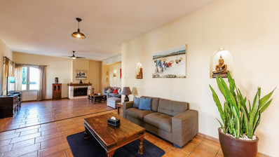 Carefully designed and custom-built by the owners, the villa boasts traditional stone and wood details, creating a comfortable and homely living space. Through the gated entrance is the large driveway that can accommodate parking for more than four cars, ensuring both convenience and privacy.