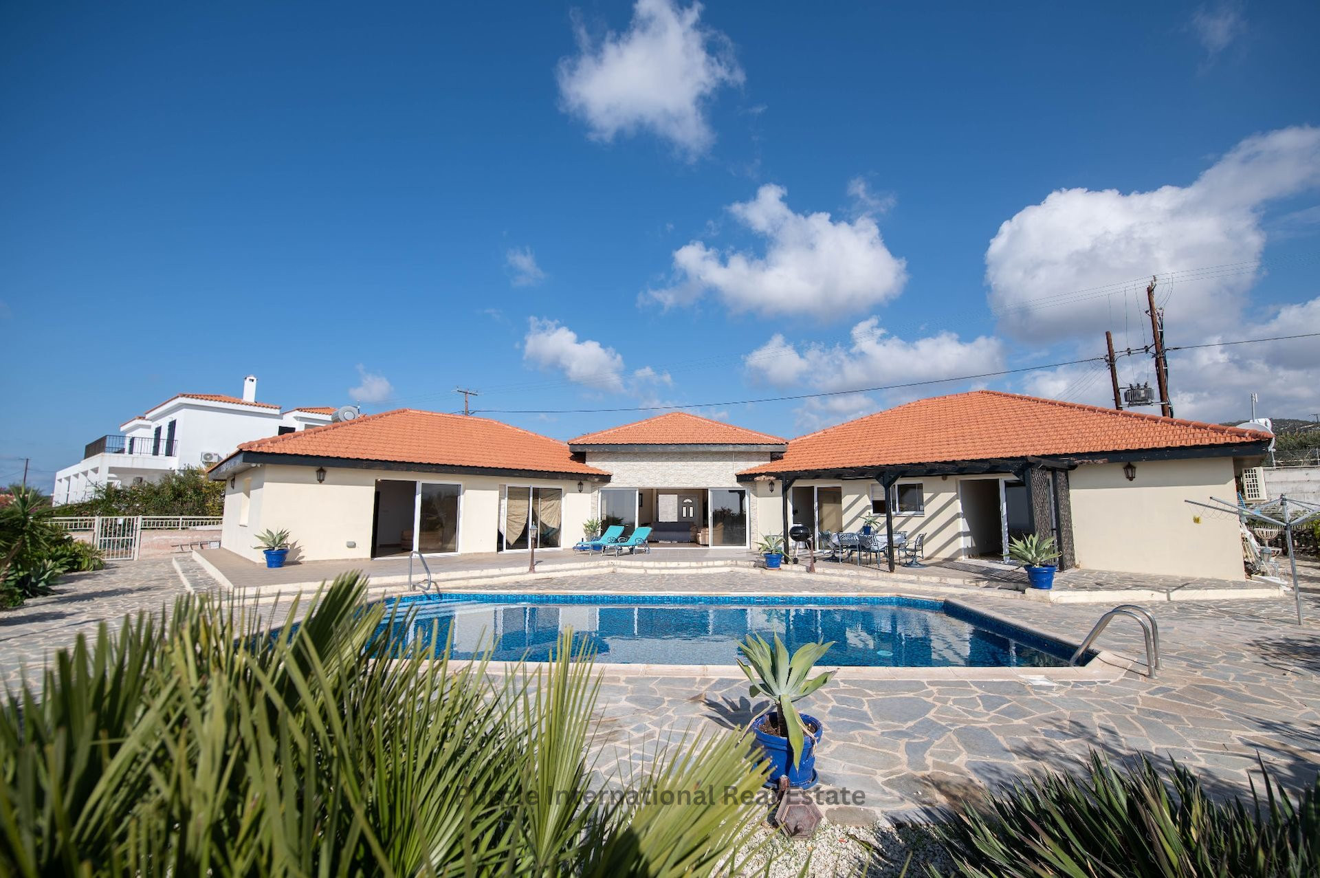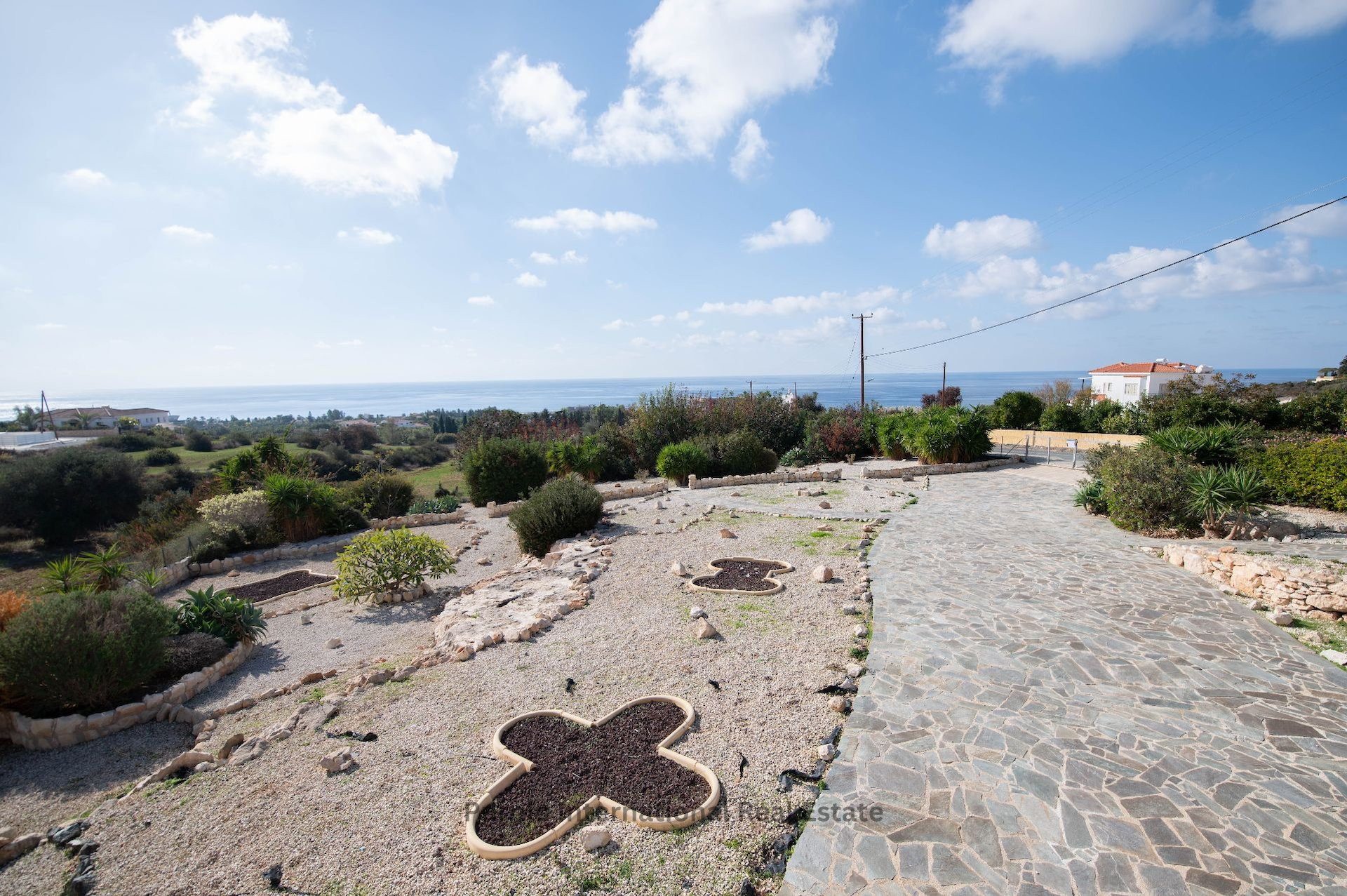 Situated on a large plot, the property showcases stunning panoramic sea views, offering a perfect backdrop for Mediterranean living.