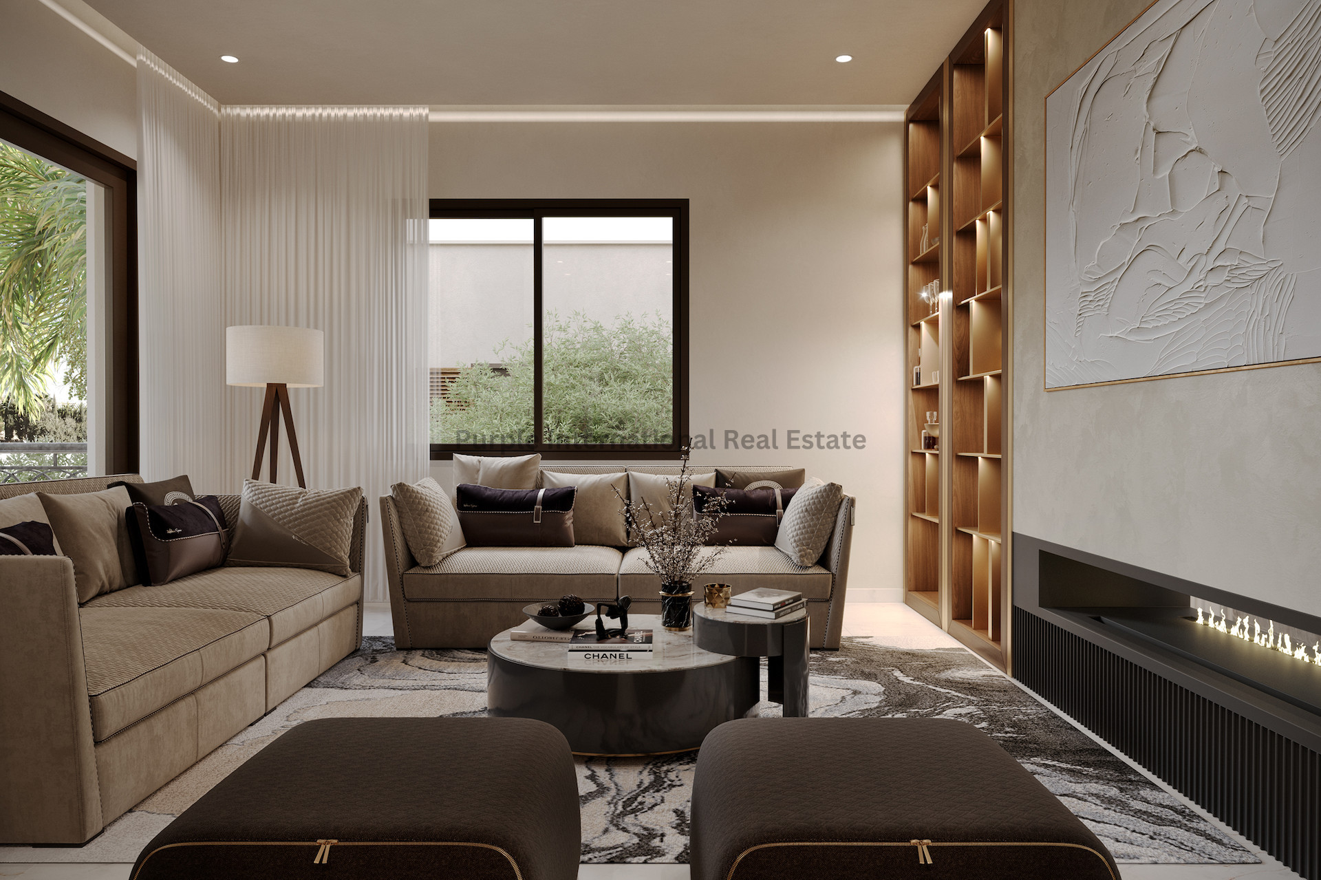 The homes are designed with modern Italian interiors that incorporate classic materials like travertine and marble, key elements in traditional Italian-style decor. Neutral tones such as beige create a timeless backdrop, while accent materials like Calacatta tiles and Maldives green swimming pools add depth and character. These colour schemes and luxurious textures create a warm, inviting ambiance that defines elegant living in this community.
