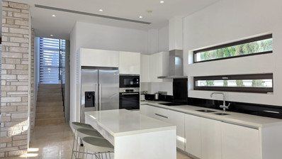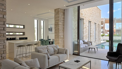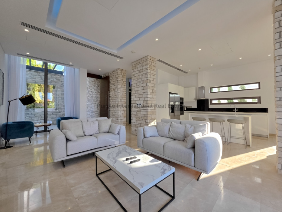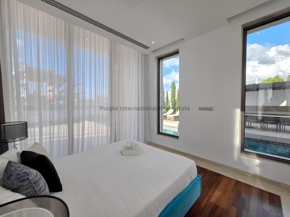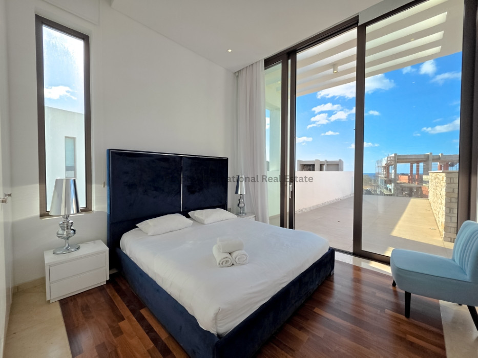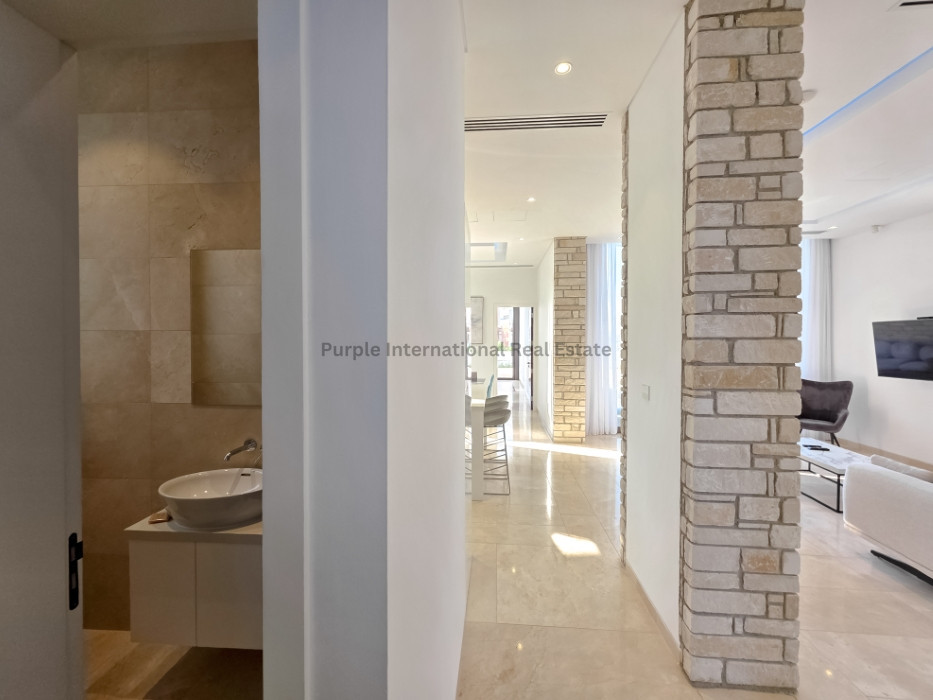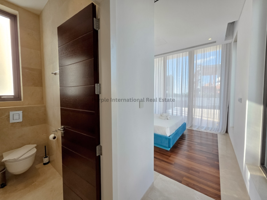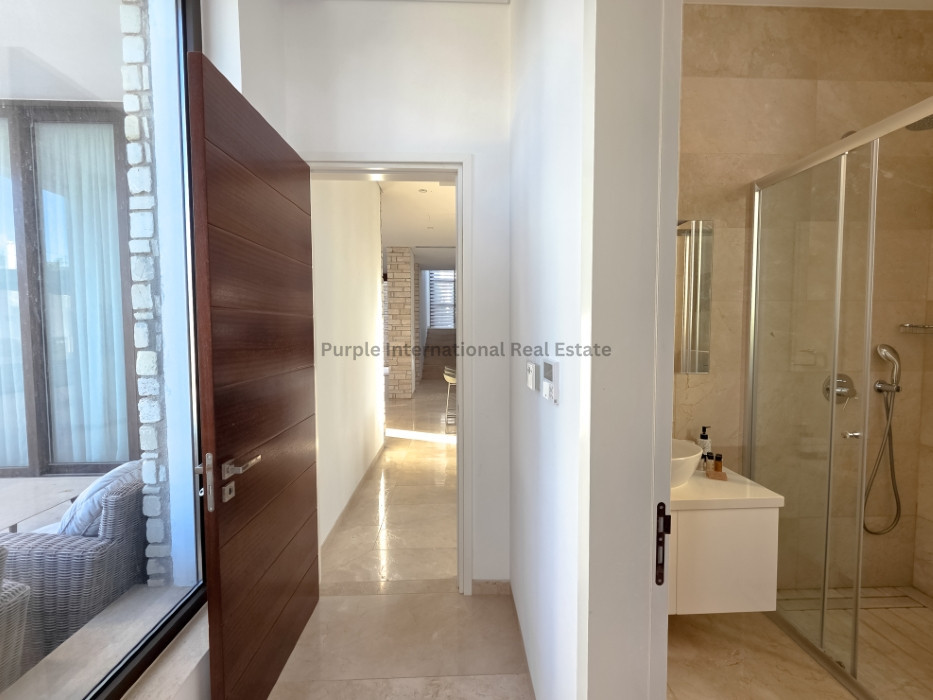 Tastefully fully furnished, the villa's interior includes an open-plan living and dining area, contemporary kitchen, and an elevator for ease of access. Underfloor heating runs throughout, providing year-round comfort. Each room is designed to maximize natural light and provide stunning sea views.