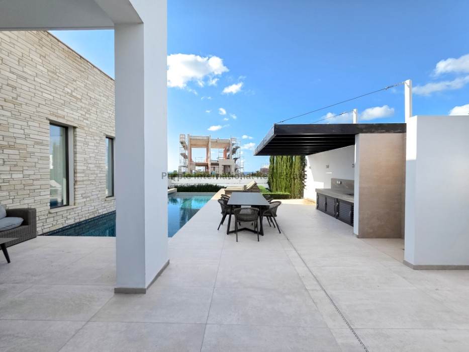 Outdoors, enjoy a private swimming pool, large terraces, and a landscaped garden—perfect for entertaining or relaxing with friends and family. The villa is only a short drive from shops, restaurants, and other essential amenities, yet maintains a private and exclusive feel.