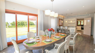 This magnificent 5-Bedroom, 5-Bath Villa is positioned on the Eastern Plateau of the resort. It has recently gone through an extensive renovation and no expense has been spared by the owner to make this property one of the best on the resort. Entering the villa, you are greeted with a spectacular living area with double height ceilings and a fabulous centre piece fireplace, opened planned dining area and a separate state of the art Kitchen with the very best fixtures and appliances. The ground floor also incorporates a stunning bedroom with luxury en-suite bathroom. Up on the first floor you will find two spacious guest bedrooms, both with luxury en-suites and the quite magnificent master suite with separate dressing area and stunning en-suite bathroom. The lower ground floor you will find the 5th bedroom and a range of storerooms.