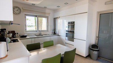 Upon entering the villa, you are greeted with bright and airy open-plan living spaces, a fully-fitted kitchen, and a dining area. The large patio doors lead to the pool area, where you will find a splendid outdoor kitchen and dining area overlooking the pool, perfect for entertaining guests.