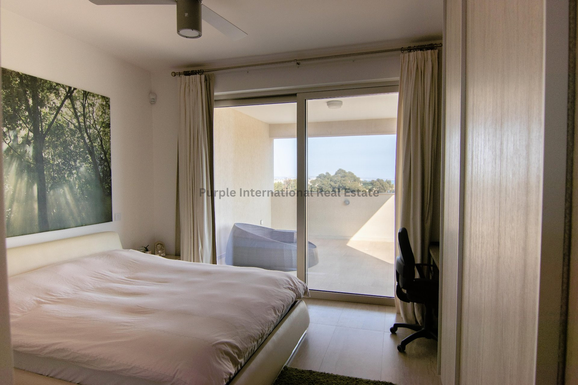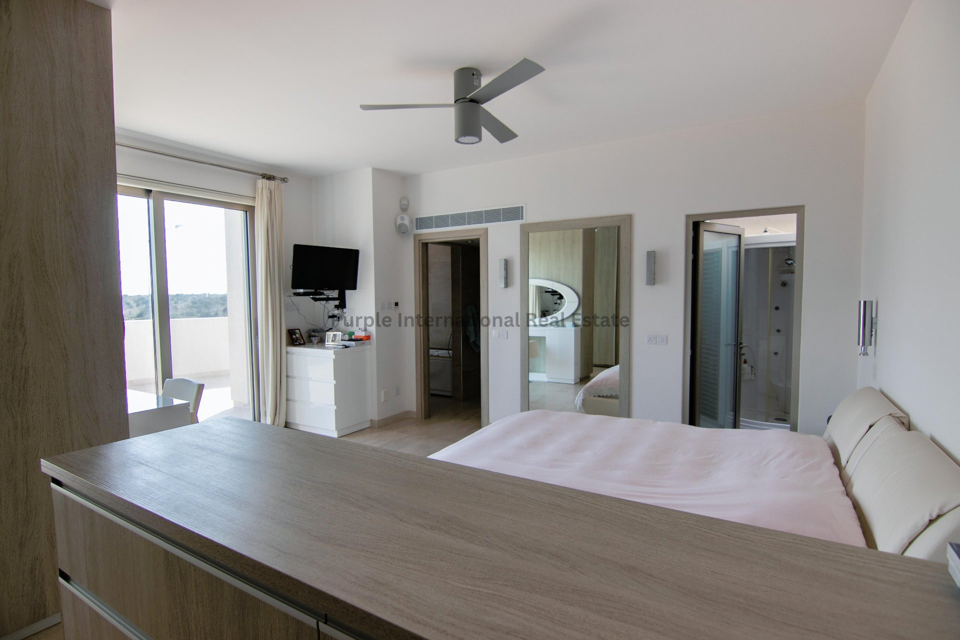 The vast master bedroom features an en-suite bathroom, shower room, a sauna, and a large private veranda offering panoramic sea views. The villa is also equipped with an elevator, providing access from the basement up to the roof garden which offers breathtaking views of Potamos, Ayia Thekla, and even Cape Greko!
