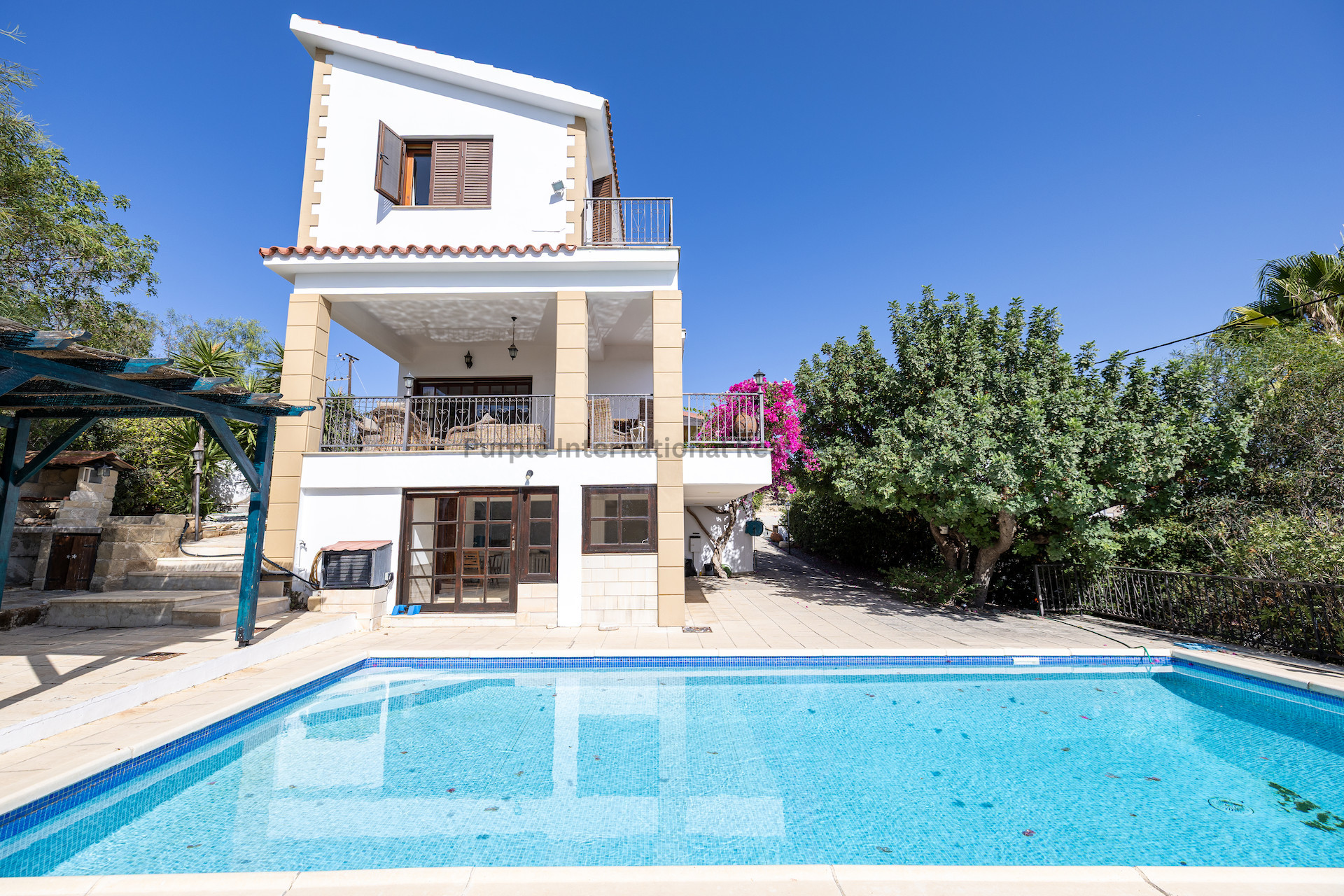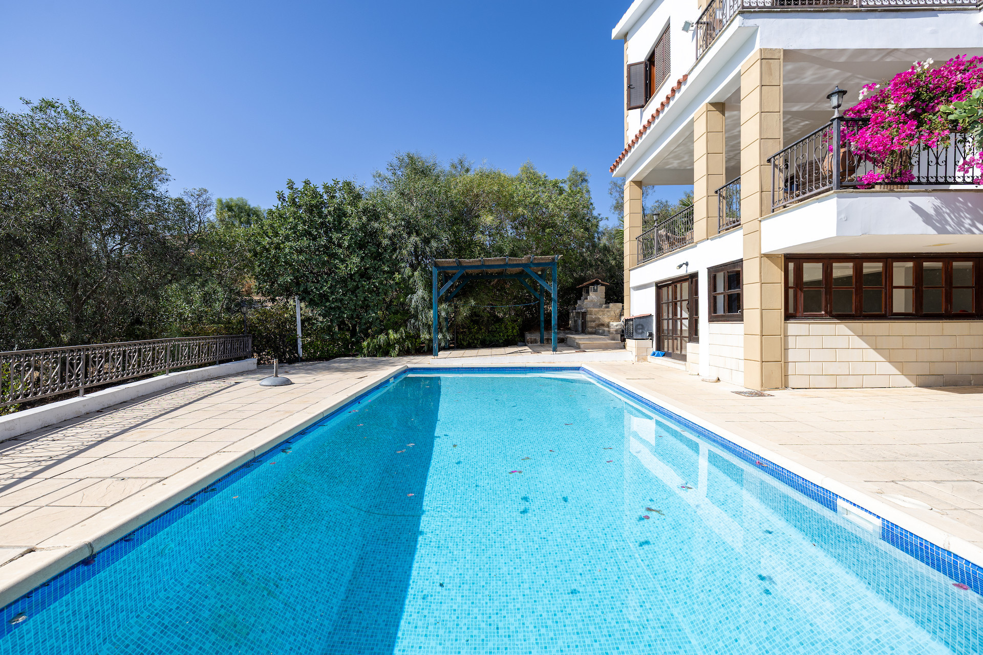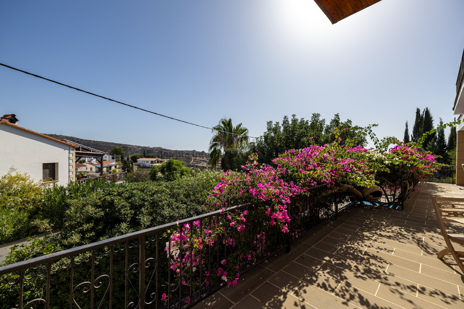 С этого уровня вы сразу попадаете на террасу с частным бассейном, вокруг которой достаточно места для загара, обедов и отдыха на открытом воздухе — это идеальное место, чтобы наслаждаться солнцем Кипра круглый год.